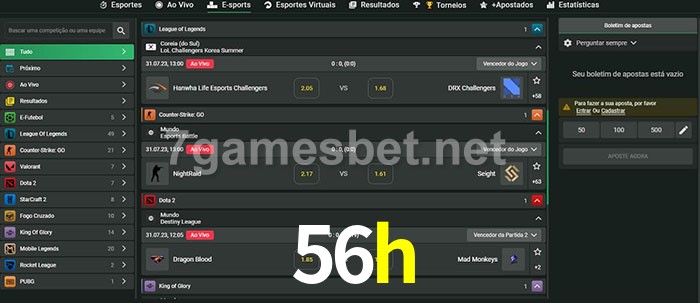 A aposta 56h oferece aos jogadores a experiência mais conveniente de apostas em eSports!